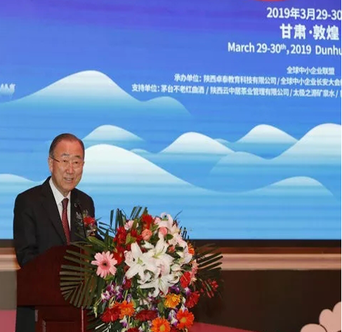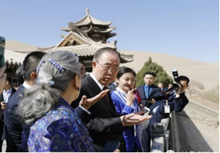 潘基文一行訪問我省敦煌,出席由全球中小企業(yè)聯(lián)盟主辦的“潘基文可持續(xù)發(fā)展大講壇”并發(fā)表主旨演講。