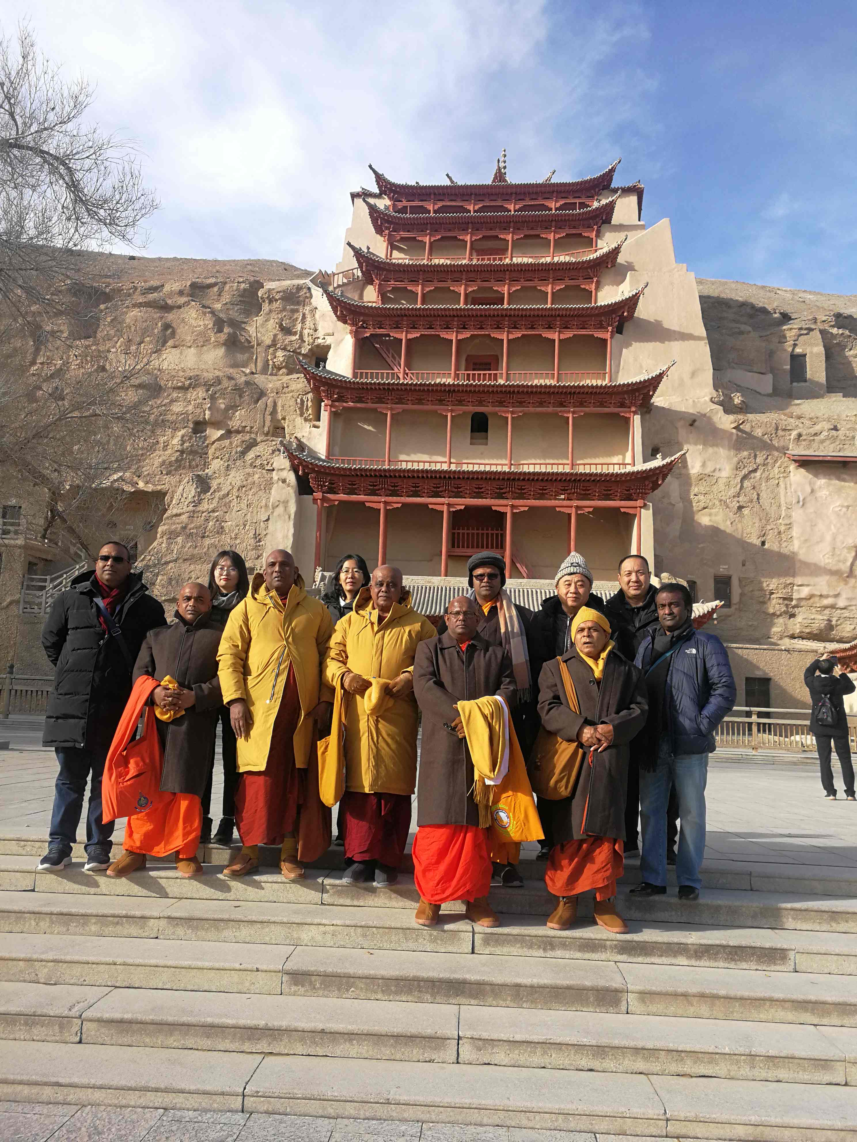 圖為訪問(wèn)團(tuán)在敦煌莫高窟前合影。